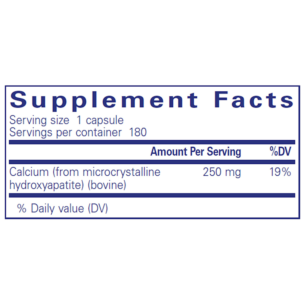 Calcium (MCHA) 250 mg by Pure Encapsulations provides microcrystalline hydroxyapatite a highly absorbable form of calcium, which supports optimal bone health and integrity. Its bioavailable formula ensures efficient absorption and utilization by the body for robust bone maintenance.