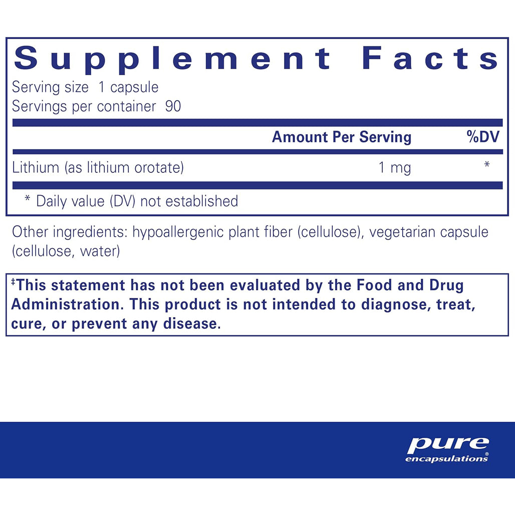 Lithium Orotate 1mg - 90 Capsules - Pure Encapsulations