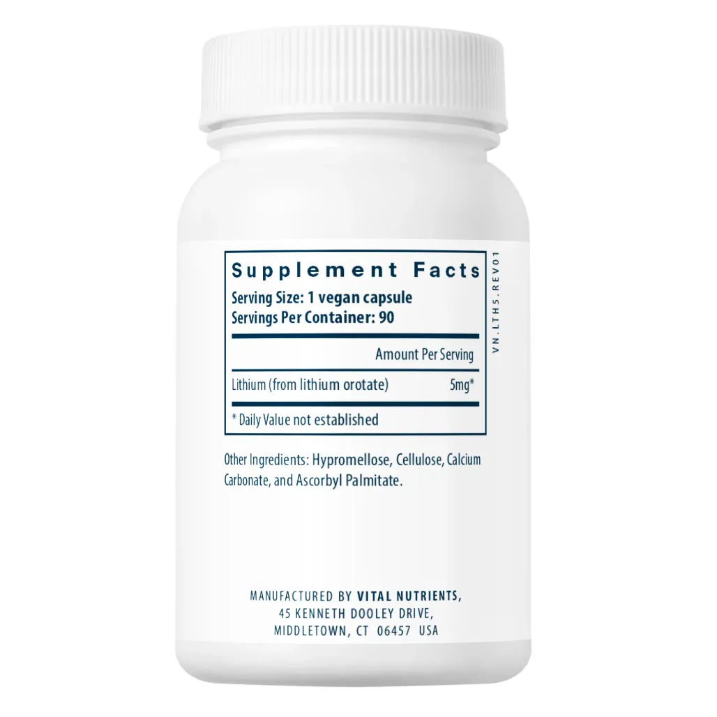 Vital Nutrients Lithium Orotate 5mg - 90 Vegetarian Capsules | Promotes Overall Emotional Health