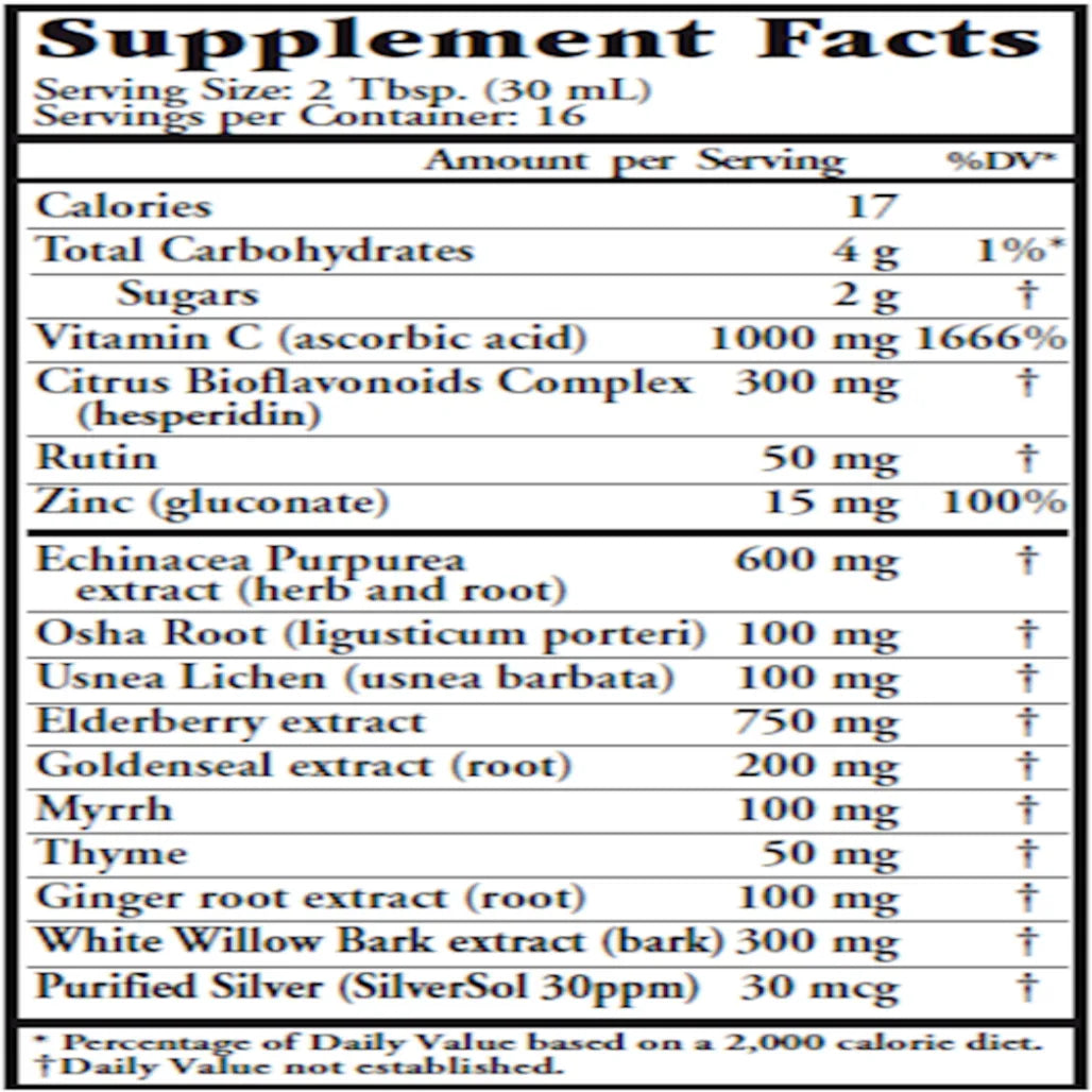 • Elderberry extract with 750 mg provides additional immune support and antioxidant protection. Elderberry juice has demonstrated in humans to have antioxidant properties because of its anthocyanidins.
