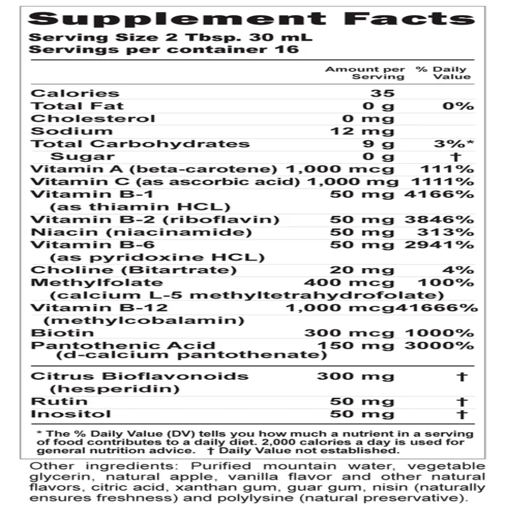 Essential B Vitamins in a great tasting liquid formula for fast absorption and more bioavailability.