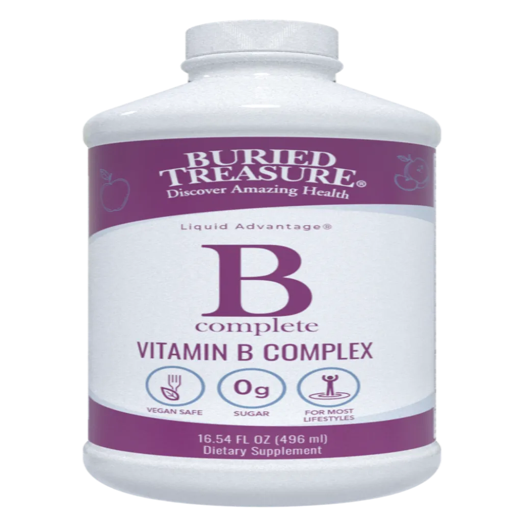 Buried Treasure™ B Complete Vitamin Complex combines all the B vitamins with Vitamin C and Citrus Bioflavonoids. This complex promotes proper functioning of the nervous system, supports the immune system, is great for a stressful life, and promotes youthful aging. It is also provides ingredients needed for healthy blood, liver and metabolism.