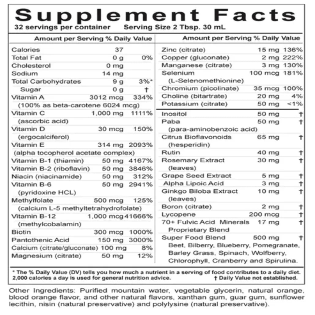 Liquid vitamins for women and men daily.