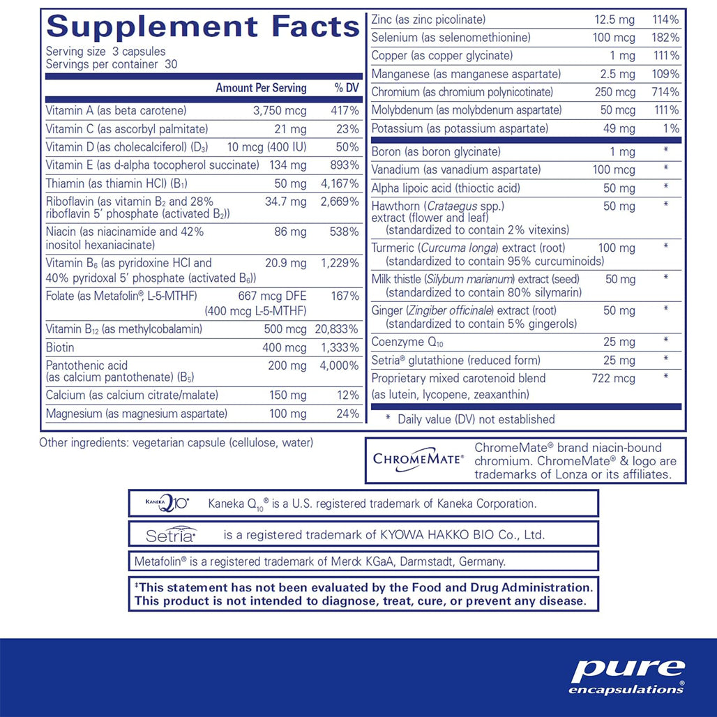 Pure Encapsulations UltraNutrient | Multivitamin Supplement to Support Liver | Cardiovascular Health and Antioxidants | 90 Capsules