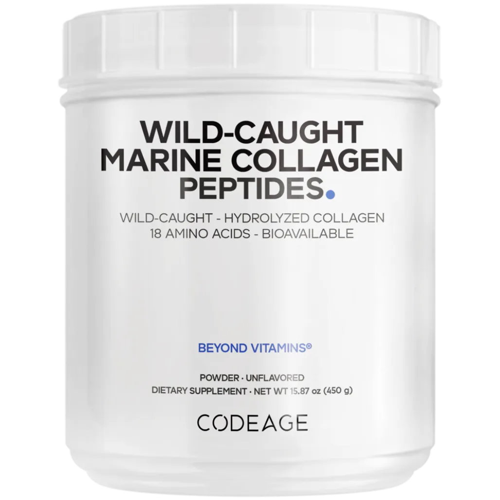 Codeage Wild-Caught Marine Collagen powder supplement offers hydrolyzed collagen of types 1 & 3, sustainably sourced from North American ocean white fish. Packed with 18 ami...