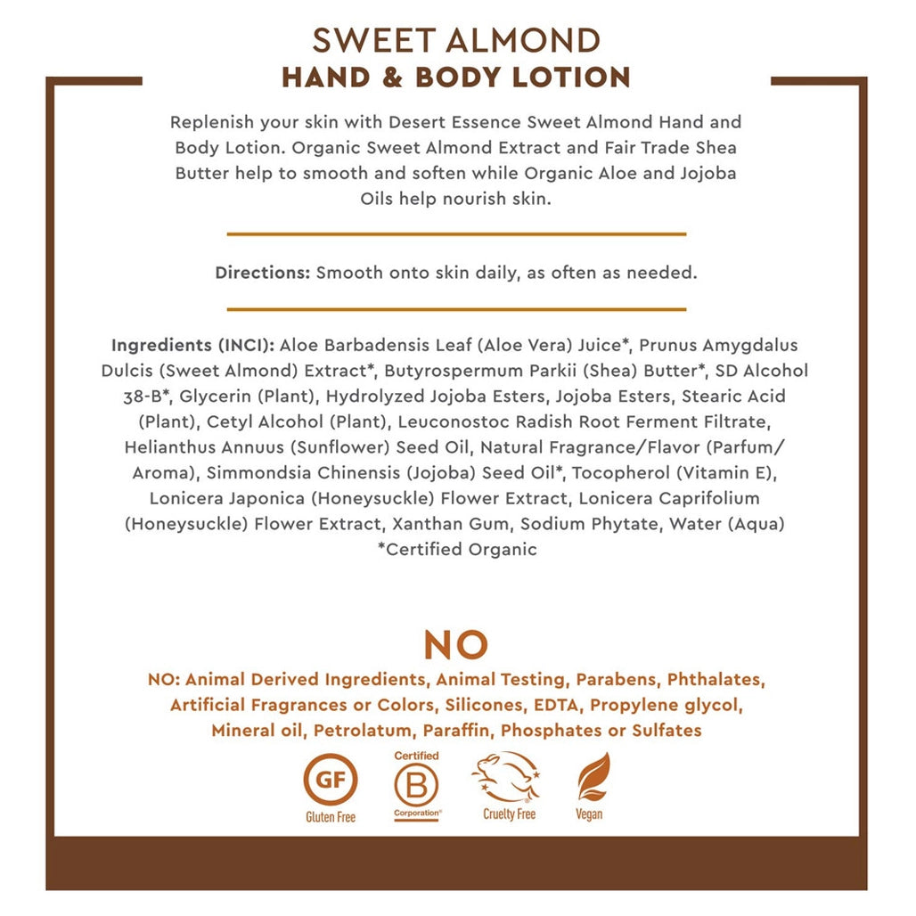 Replenishing hand and body lotion formulated with Organic Sweet Almond Oil, Shea Butter and Jojoba Oil. Softens and nourishes skin, while providing a sweetly authentic sensory ...