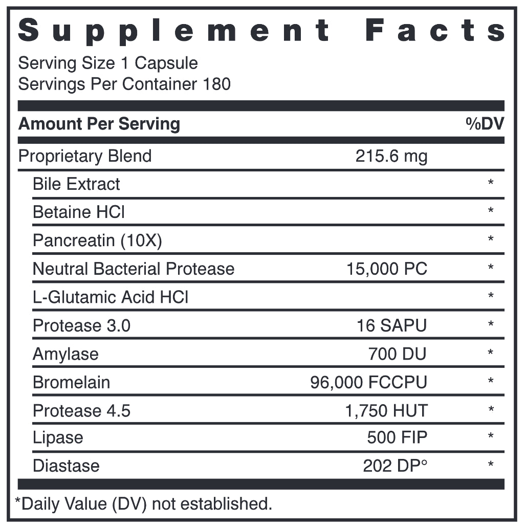 Digestizyme Plus™ has a comprehensive blend of enzymes to support digestive health, featuring ox bile and pancreatin to optimize the breakdown of fats, as well as proteins and c...