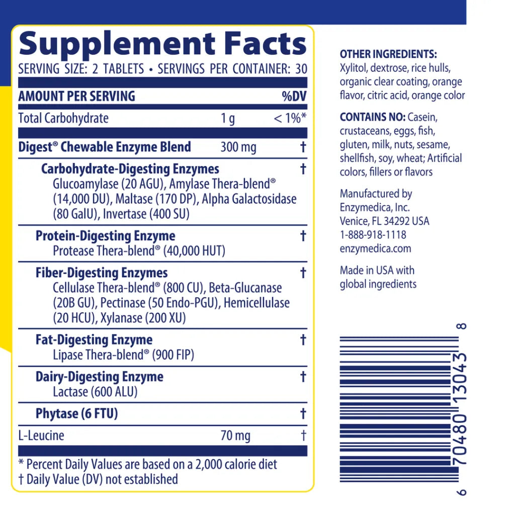 Tasty, chewable digestive enzymes to unlock nutrition* Chewable Digest Complete® speeds up the digestive process and helps relieve occasional gas, bloating, indigestion and irre...