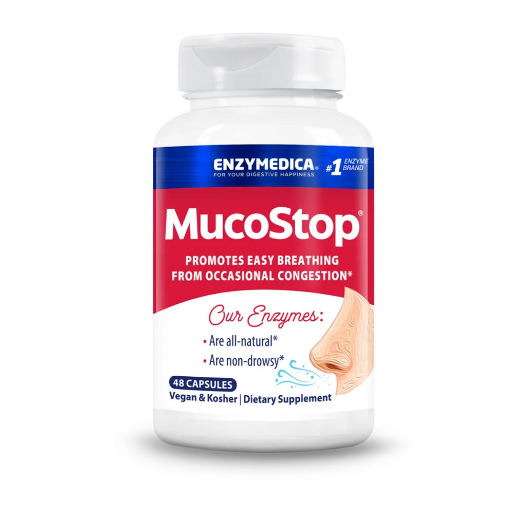 Seasonal or occasional congestion may produce excess mucus, hindering upper and lower respiratory function. MucoStop™ contains a blend of enzymes specifically formulated to prom...