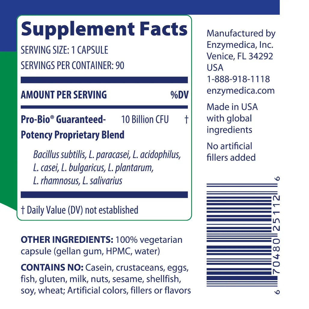 Good health starts in the gut. With 8 strains and 10 billion CFUs of noncompetitive, guaranteed potency probiotics, Pro-Bio supports regularity and immune function, along with promoting a flourishing microbiome.* Benefits: • 8 noncompetitive strains for increased diversity • 10 Billion CFU guaranteed potency • Survives stomach acid • Supports regularity and immune health* • Promotes a healthy microbiome and optimal digestive function* • Helps reduce occasional gas, bloating and indigestion* A diverse microbiome helps improve our health, and probiotics help improve the health of the microbiome. What is the microbiome and what helps it flourish? The microbiome is the collection of trillions of microbes living within your GI tract, many of which are beneficial. If you can improve the health of those good microbes, they can in turn improve your own health. One of the key factors associated with a healthy intestinal microbiome is its diversity. Each species and strain has its own unique set of benefits, so the more types of beneficial bacteria you have, the more benefits you will receive. Therefore, it should be the goal of anyone looking to improve the health of their microbiome to improve its diversity. Probiotics are one of the best-known ways to improve the health and diversity of the gut microbiome.* When the microbiome is running strong, it supports digestion, immune function, removal of toxins and absorption of nutrients. What makes the probiotics in Pro-Bio better? The probiotics in Pro-Bio are designed help the microbiome as much as possible. It contains eight non-competitive strains of probiotics to give a diverse base to create a diverse microbiome.* One of these strains is Bacillus subtilis, which is one of the most studied probiotic strains in the world and has been shown to normalize intestinal microflora balance.* It adheres to the colon, persists in the GI tract and is well tolerated by people of all ages.*