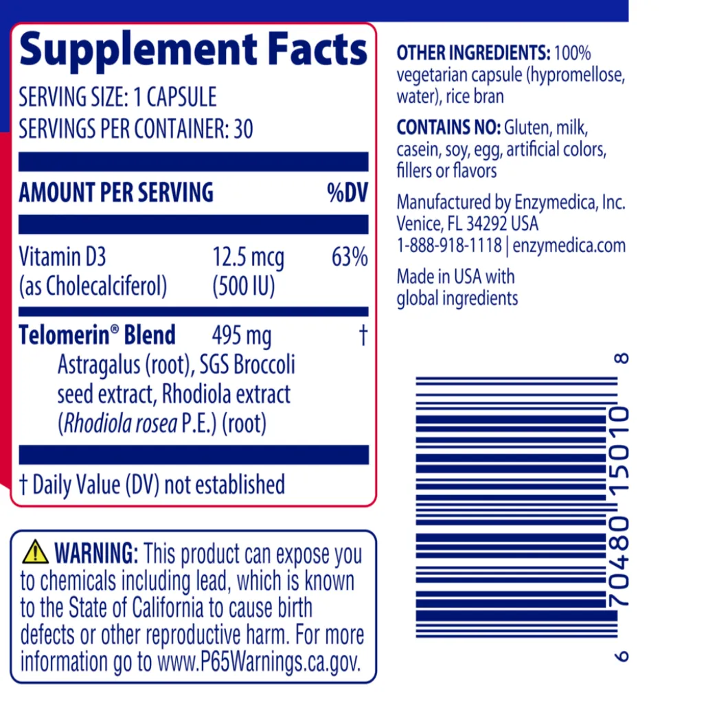 Telomerase is a naturally occurring enzyme that lengthens telomeres and protects them from shortening. Telomere Plus™ has been shown to increase telomerase activity.