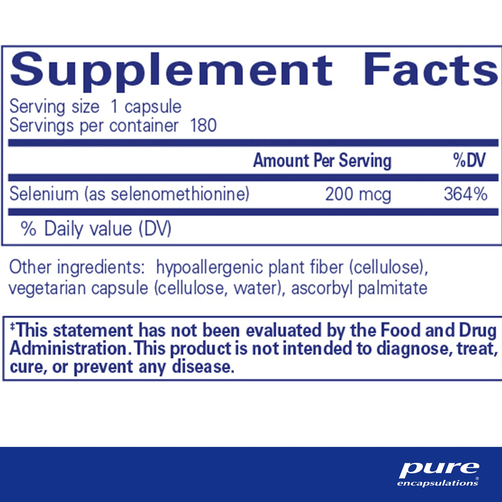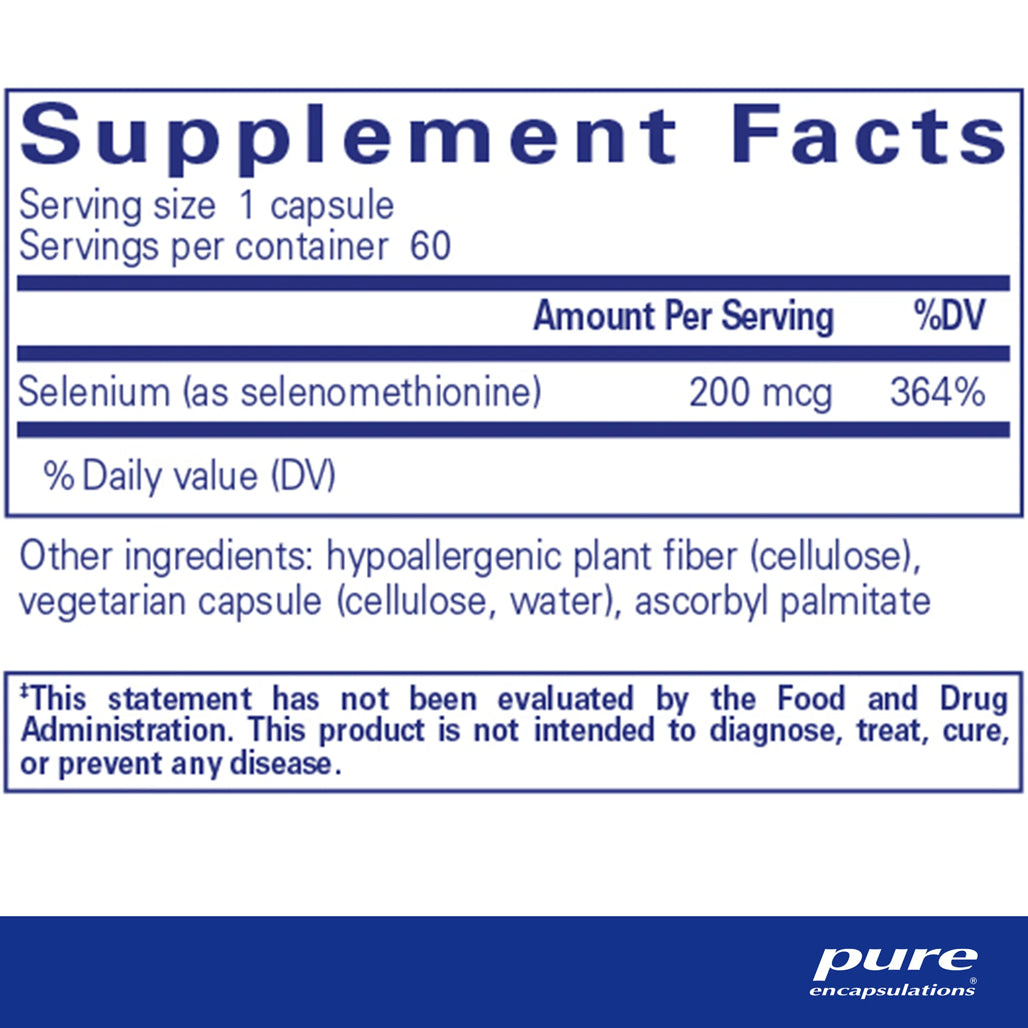 Selenium 200 mcg | Pure Encapsulation | selenium 200 mcg dosage | 60 Capsules