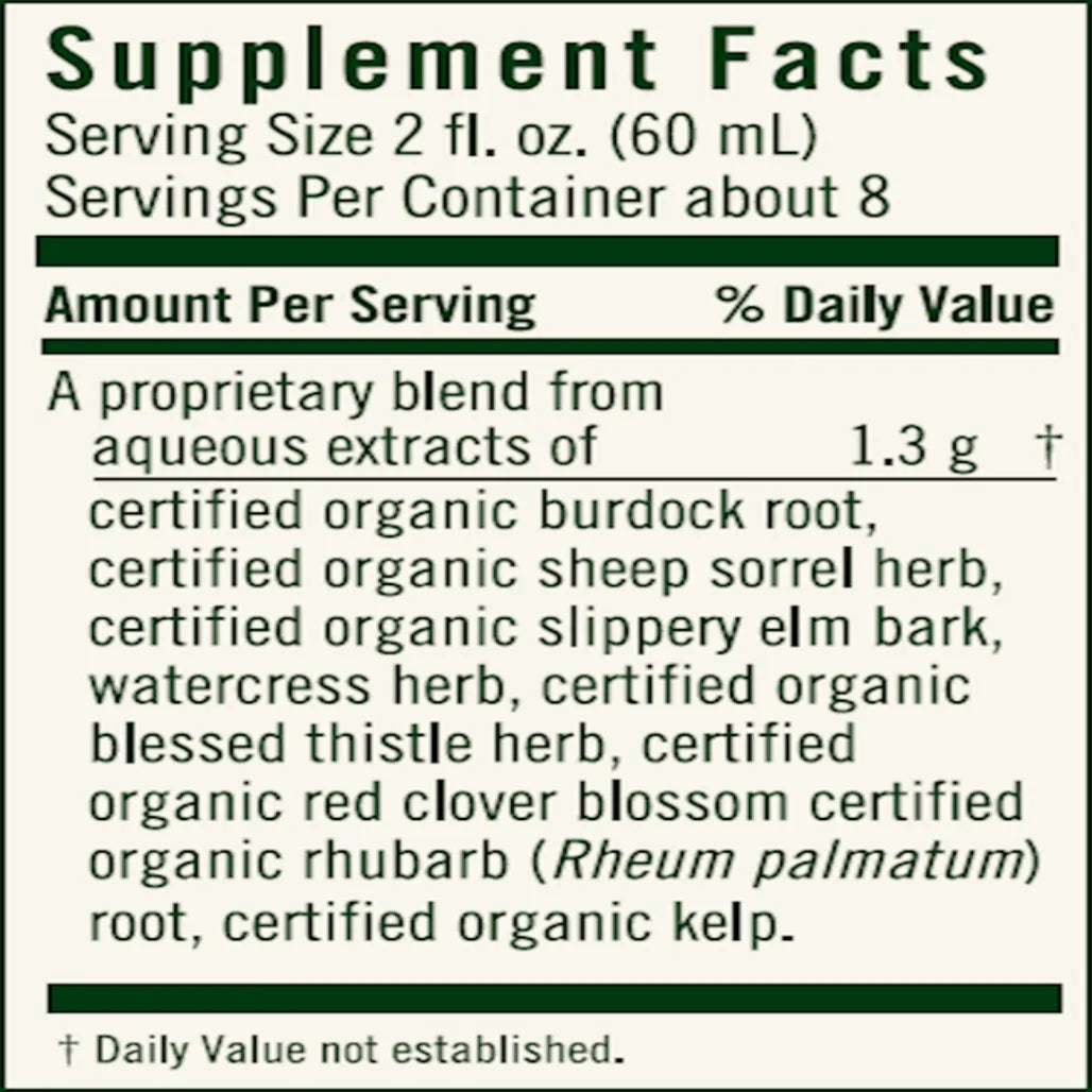 Flor-Essence is a gentle cleanse that supports your body’s natural processes, helping it to remove toxins more efficiently.* Inspired by a traditional Ojibwa formula, the 8-herb formula was developed and perfected through years of research by nurse Rene Caisse, with the help of Dr. Charles Brusch, former personal physician to U.S. President John F. Kennedy. The result is a traditional formula that can help the body cleanse itself, naturally.* The formula includes burdock root, sheep sorrel, slippery elm bark, blessed thistle, watercress, red clover, rhubarb root and kelp.