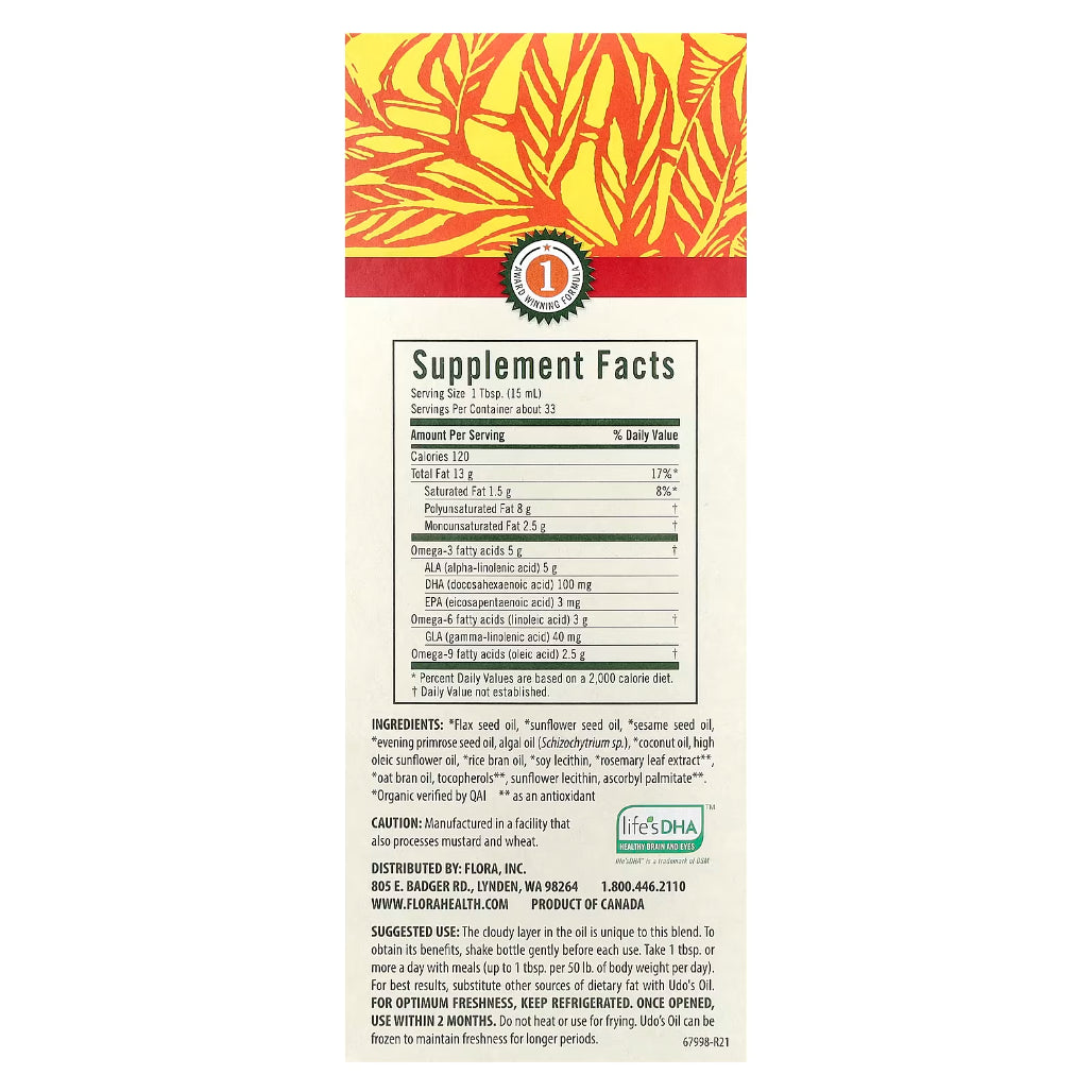 Soak up the benefits of DHA, sustainably, with Udo’s Oil® DHA 3 • 6 • 9 Blend. It combines DHA from unrefined, uncontaminated, sustainably-sourced DHA-rich algae, rat...