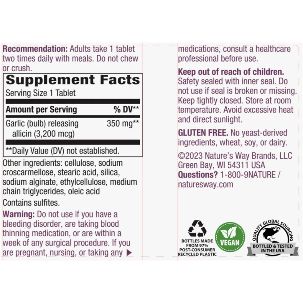 SmartRelease® Garlic Using a proprietary enteric-coating, Garlicin tablets are protected from stomach acid. Once in the intestinal fluid, Garlicin tablets completely disintegrat...