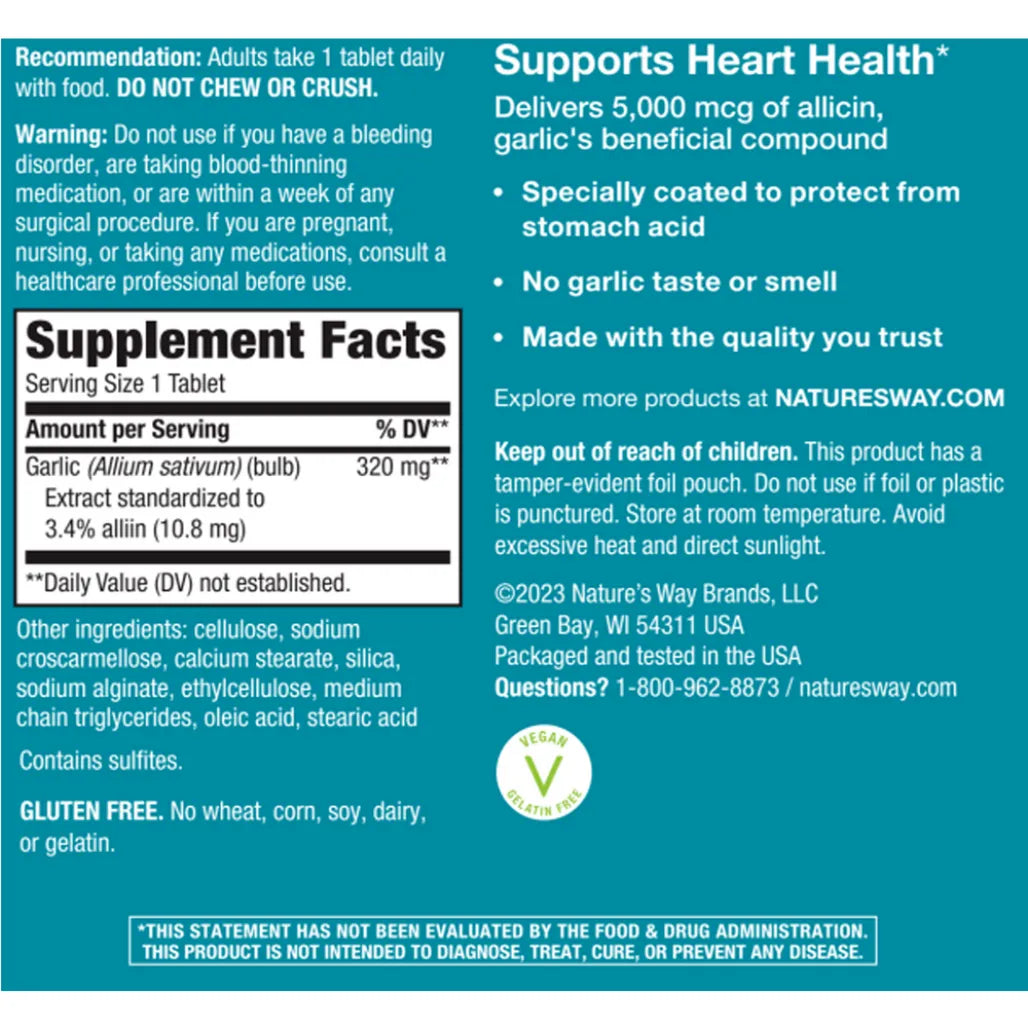 • Delivers 5,000 mcg of allicin, fresh garlic’s most beneficial compound.• Enteric-coated tablets reach the small intestine, so you get garlic wh...