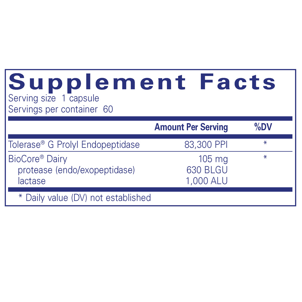 Gluten/Dairy Digest by Pure Encapsulations is a blend of digestive enzymes that support normal gluten and dairy digestion. Gluten/Dairy Digest helps to relieve bloating or gas d...