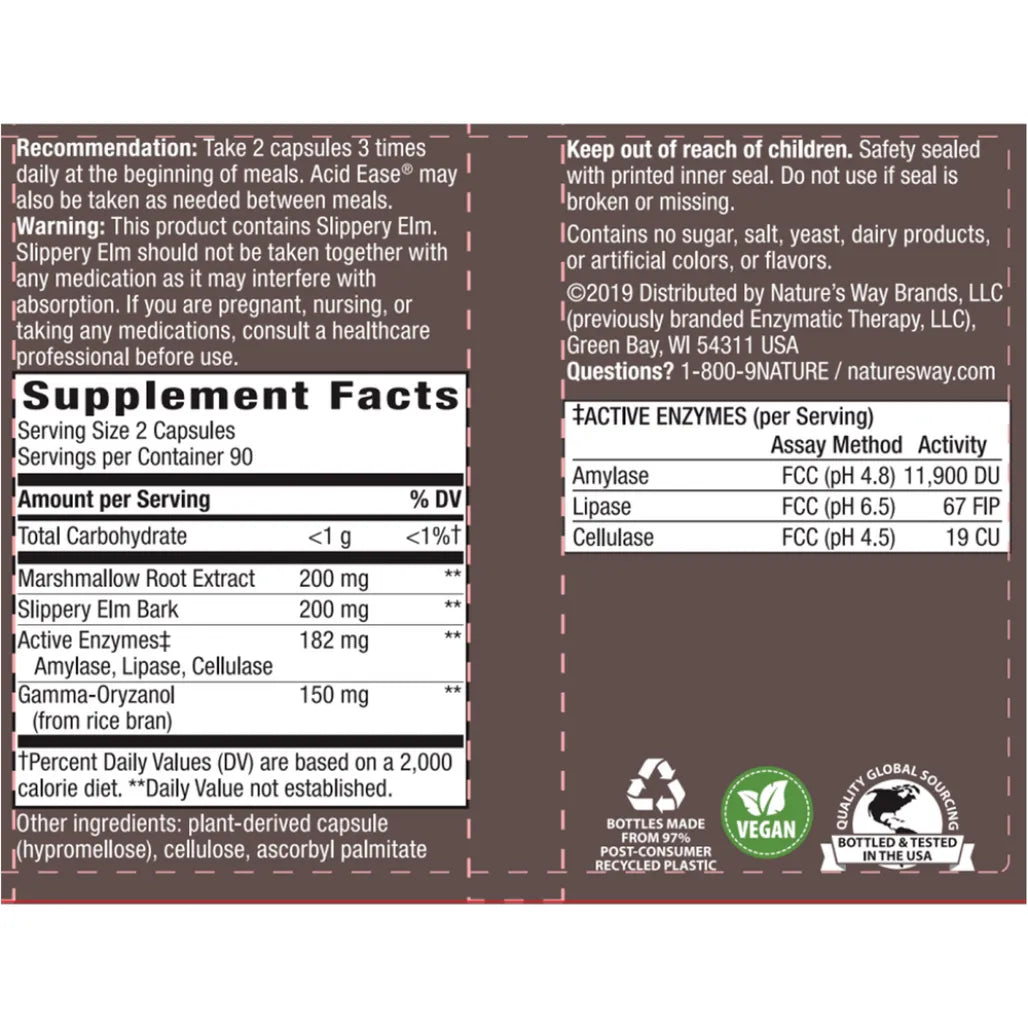 Dietary SupplementSoothing Digestive Support*For Sensitive Stomachs*Trust Acid-Ease® for Soothing Digestive Support! *Acid-Ease is clinically formulated for individuals with sen...