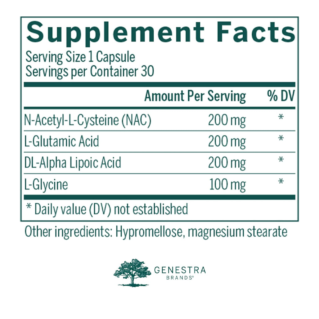 Glutathione Precursors by Genestra | 30 Capsules | Includes alpha-lipoic acid | Enhances free radical scavenging