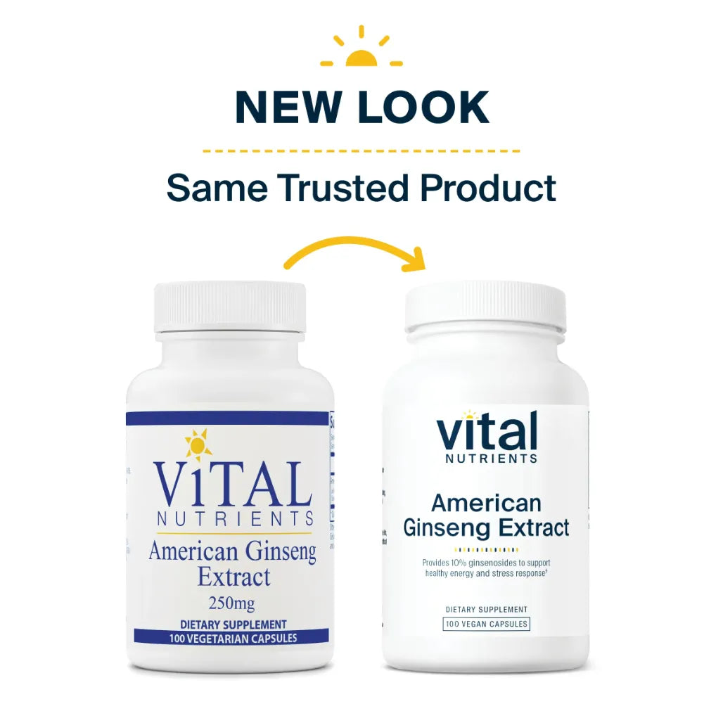 • Vital Nutrients American Ginseng 250mg - 100 Veg Capsules | Supports Adrenal function