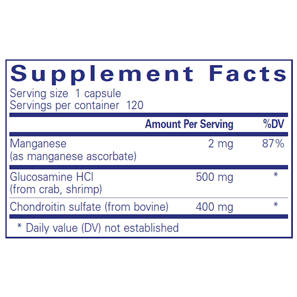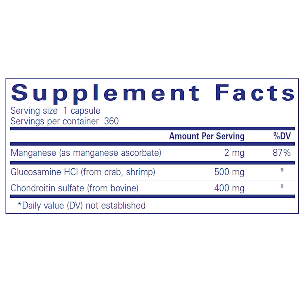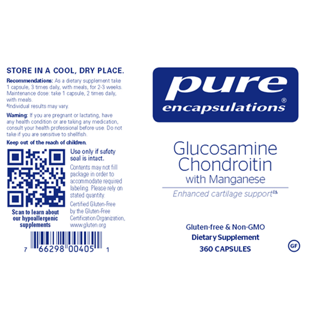 Pure Encapsulations Glucosamine/Chondroitin with Manganese is a powerful, complementary formula supporting optimal joint mobility and integrity