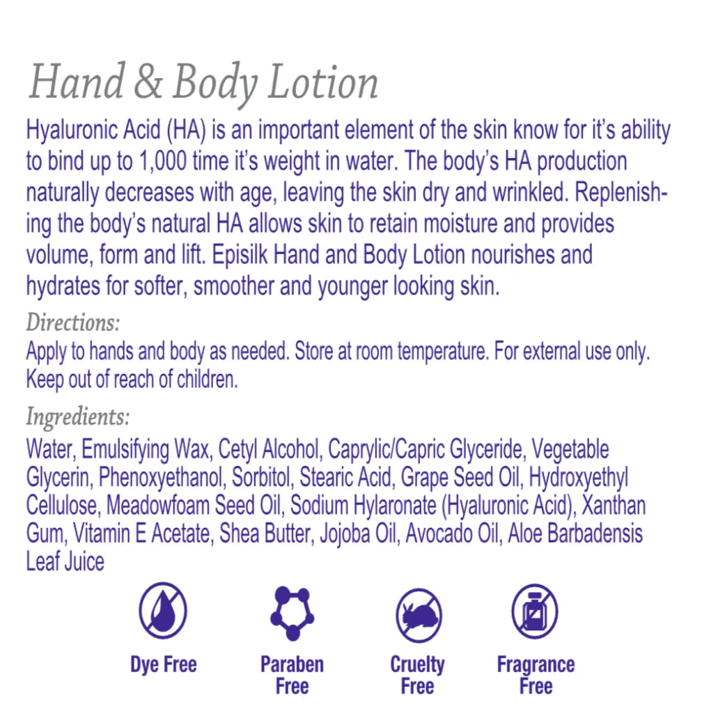 Hand and Body Lotion contains high concentrations of Hyaluronic Acid. Moisturize and hydrate dry skin for a soft, smoother and younger appearance, while supporting...