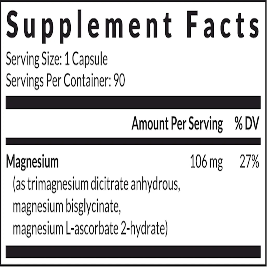 Magnesium provides an optimal blend of specialized magnesium compounds, including Citrate, Bisglycinate, and Ascorbate, to ensure maximum bioavailability and absorption. Our specialized combination of magnesium compounds works together to support energy production, cognitive health, and healthy muscle and nerve functioning.
