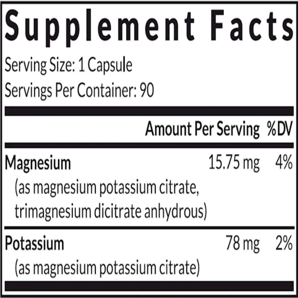 Potassium+Mag is a highly bioavailable potassium complex that is formulated without the use of excipients or fillers. This non-GMO formula provides 78mg of potassium per capsule...
