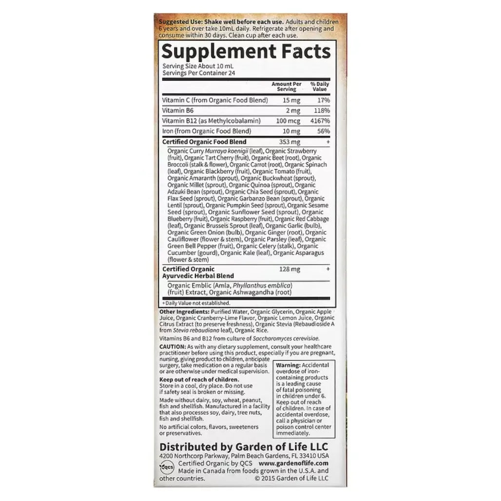 Liquid Whole Food Dietary SupplementWhole Food Liquid Iron from real plant sources that's certified organic and non-GMO verified. Iron is essential to blood health, providing energy to the entire body.*Suggested Use: Shake well before each use. Adults and children 6 years and over take 10 mL daily. Refrigerate once opened and consume within 30 days.