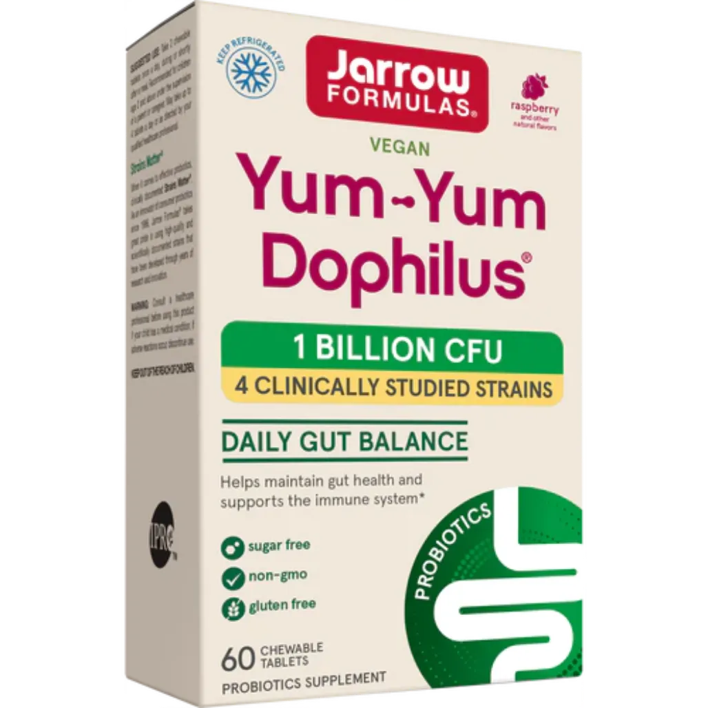 Jarrow Formulas® Yum-Yum Dophilus® provides 4 clinically documented strains of beneficial bacteria in a yummy chewable tablet. Beneficial intestinal flora c...