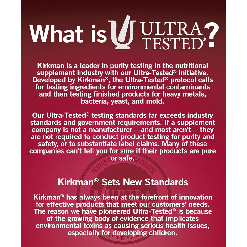 A potent chewable multi-vitamin without artificial flavors formulated for children. Free of common allergens. Gluten and casein free. Ultra Tested®.