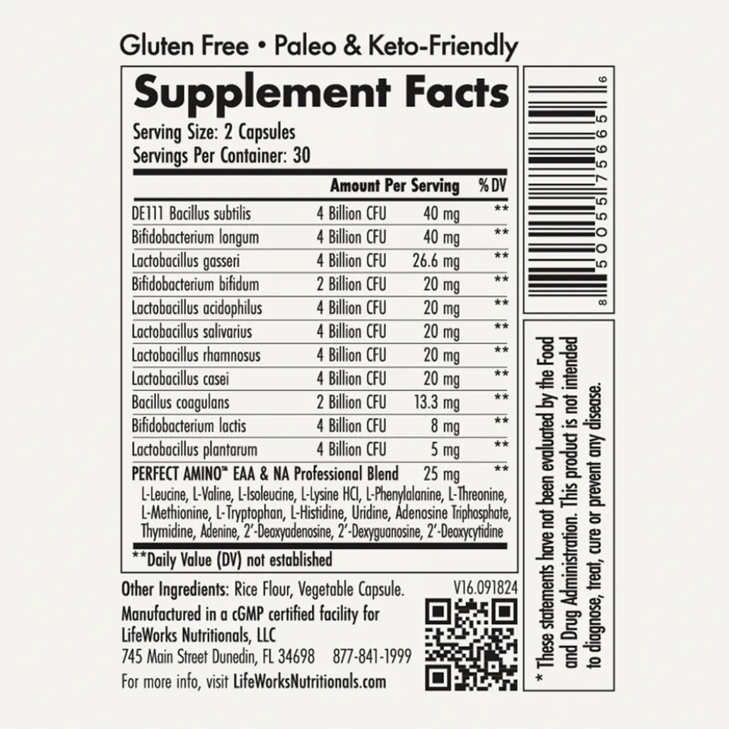 Enhanced with Essential Amino! Beneficial bacteria living in your colon thrive by consuming essential amino acids as their food source. By adding EAAs into the digestive resistant capsule with the probiotics we ensure this important ""food"" makes it all the way to these bacteria to give you the very best results.*