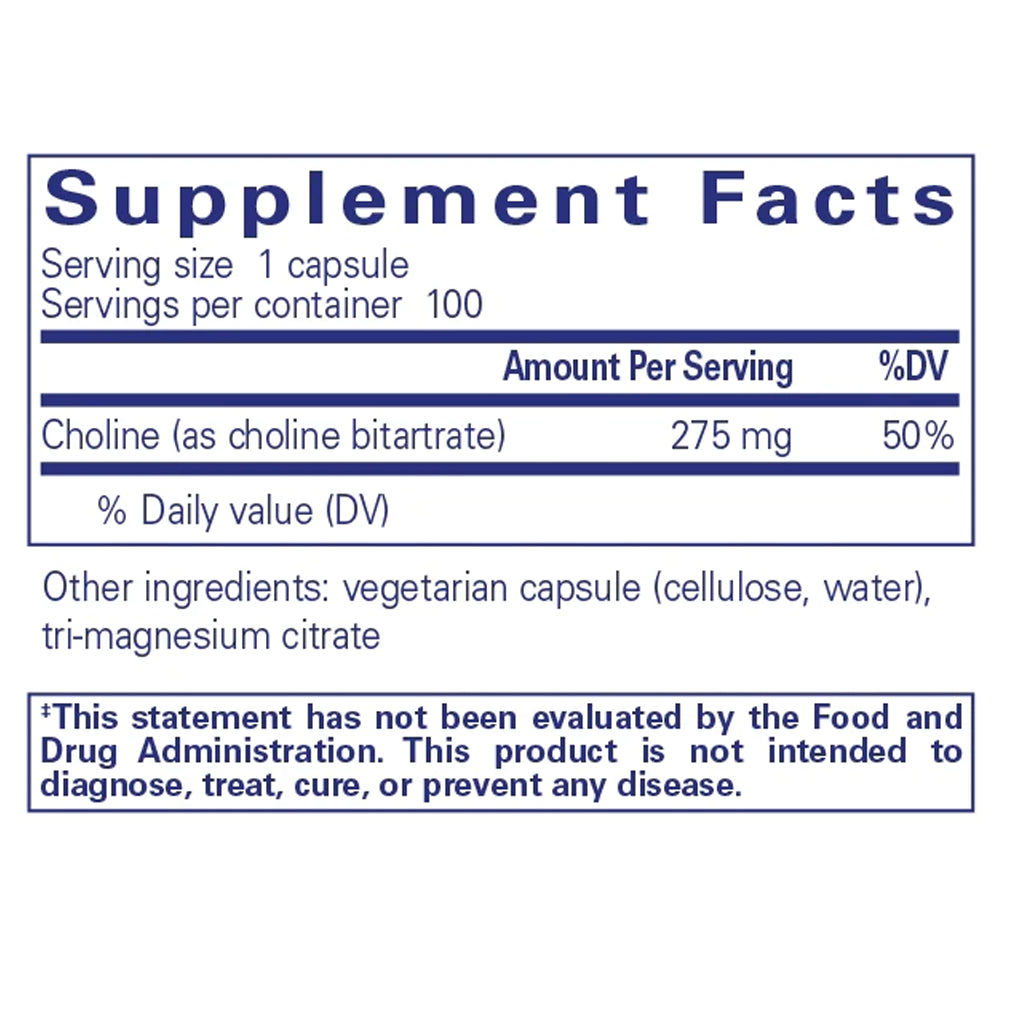 While long considered a non-essential vitamin, recent evidence confirms that the body cannot synthesize enough choline to meet daily needs. This has prompted the National Academy of Science to create a daily value for choline of 550 mg. Dietary intake of choline is often below this level.Choline is an important nutrient for methylation, cell membrane structure and neurotransmission, and lipid metabolism and transport. Choline and its metabolites are the major source of methyl groups in the diet. Methylation plays many roles including neurotransmission, vitamin assimilation, DNA synthesis and gene regulation.Choline is required for the synthesis of phospholipids and acetylcholine, a neurotransmitter involved in attention, learning and memory.Certain genetic variations in MTHFD1 and PEMT, enzymes that play critical roles in methylation and phosphatidylcholine synthesis, respectively, have been associated with increased dietarycholine needs.Since the de novo synthesis of phosphatidylcholine requires the estrogen-inducible PEMT enzyme, women with low estrogen levels and/or certain SNPs in the PEMT gene have increased choline needs.Postmenopausal women with lower estrogen have higher dietary choline requirements because of reduced PEMT function.Choline requirements also increase during pregnancy.One clinical trial showed that women who consumed 480 mg of choline daily during pregnancy had offspring with faster processing speed than those who did not.A randomized, double blind, placebo-controlled trial suggests that higher intakes of choline also promote healthy hepatic fat metabolism.