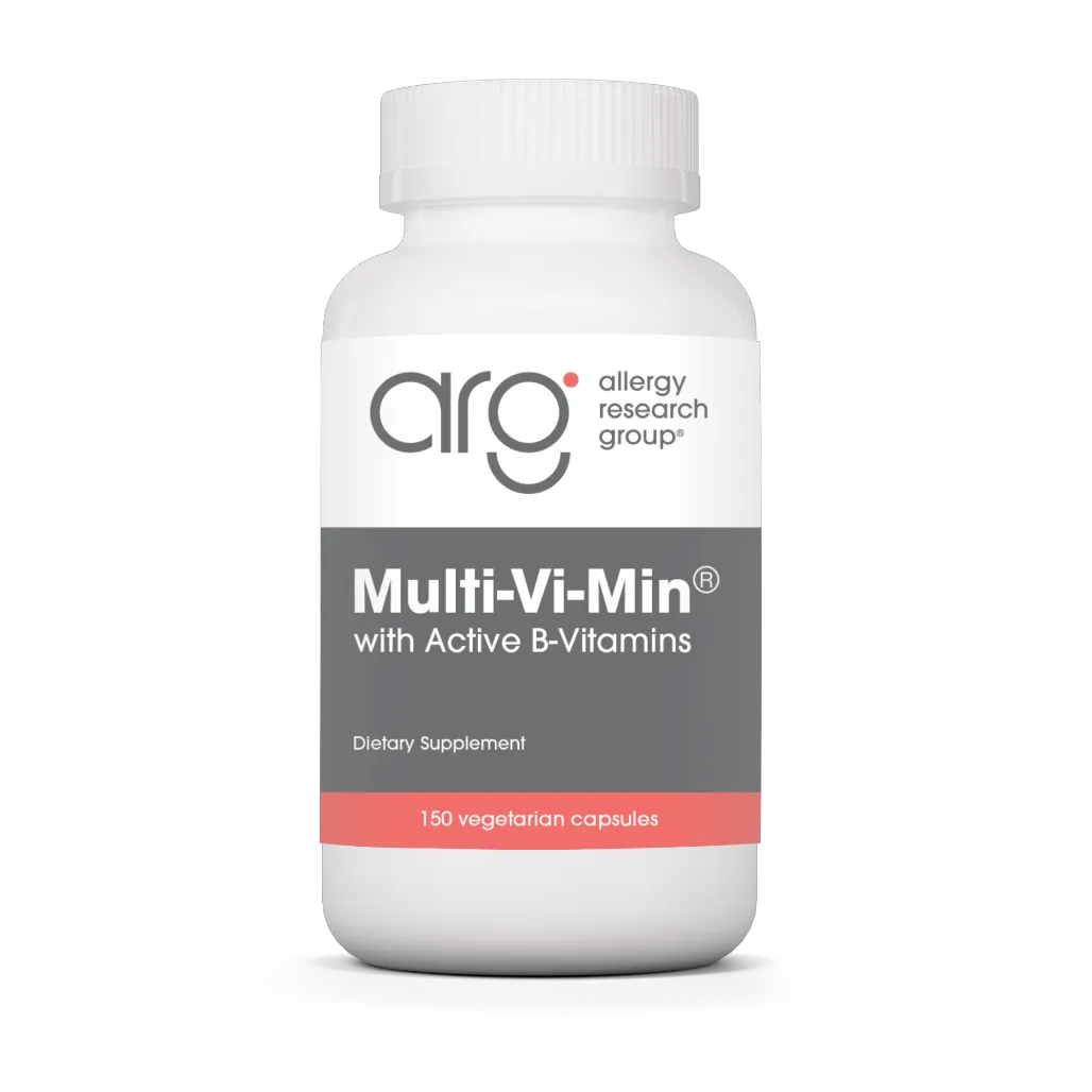 Multi-Vi-Min by Allergy Research Group is a dietary supplement that provides multivitamin support in a low-allergen potential formula.
