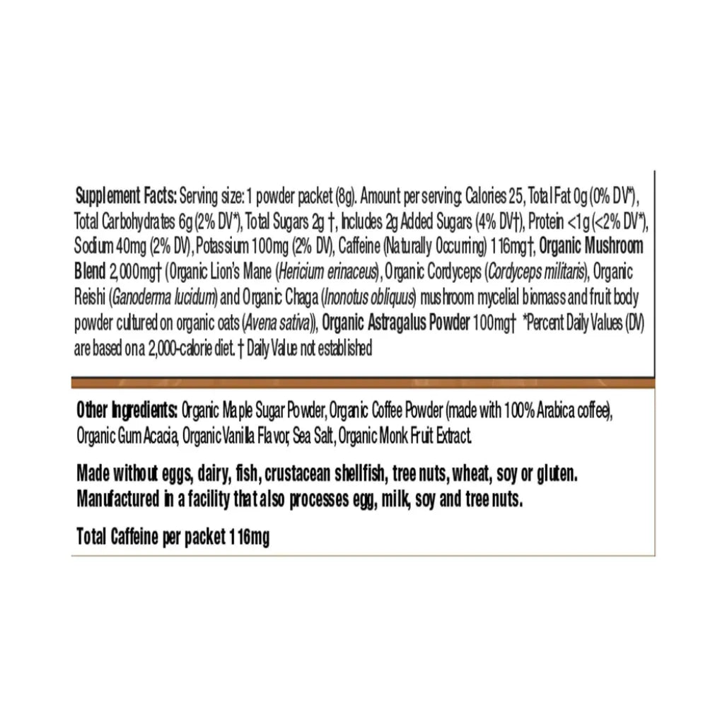Energizing coffee latte blend with Lion's Mane, Cordyceps, Reishi, Chaga and Astragalus