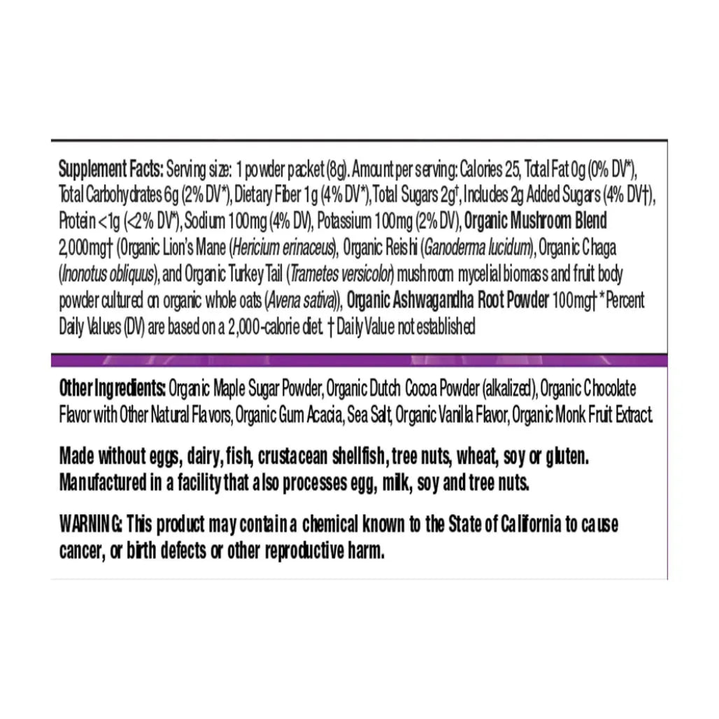 Indulgent hot chocolate blend with Lion's Mane, Reishi, Chaga, Turkey Tail and Ashwagandha