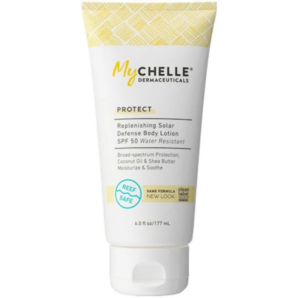 Replenishing Solar Defense Body Lotion SPF 50 is a 100% mineral-based active ingredient, hydrating body sun protection that melts into skin delivering UVA/UVB broad-spectrum protection without leaving behind a white cast or any greasy residue. Rich in Coconut Oil and Shea Butter, skin instantly feels nourished and hydrated. Water resistant.