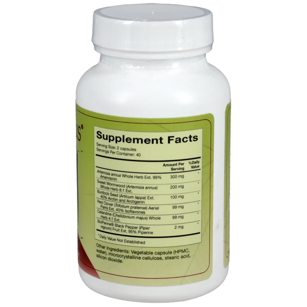 maintains healthy cellular response*. encourages the body's natural elimination of metabolic waste*. activates the liver, spleen, kidneys, lymph, and glandular systems*. supports immune system balance*. Artemis Plus® encourages the body’s natural excretion of cellular debris, supports cell nutrient exchange and uptake, and inhibits the proliferation and viability of certain organisms. It features herbal extracts that are classified as alteratives or depuratives, which help to maintain a healthy balance of metabolic and catabolic processes. Artemis Plus® combines purified artemisinin with a full spectrum extract of Artemisia annua for optimal benefit in supporting immunological balance.