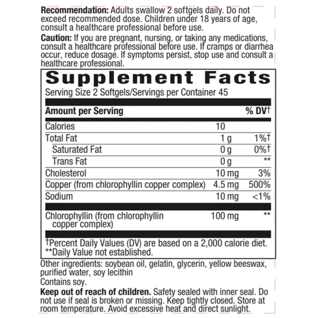 Concentrated chlorophyll complex that reduces digestive tract odors.
