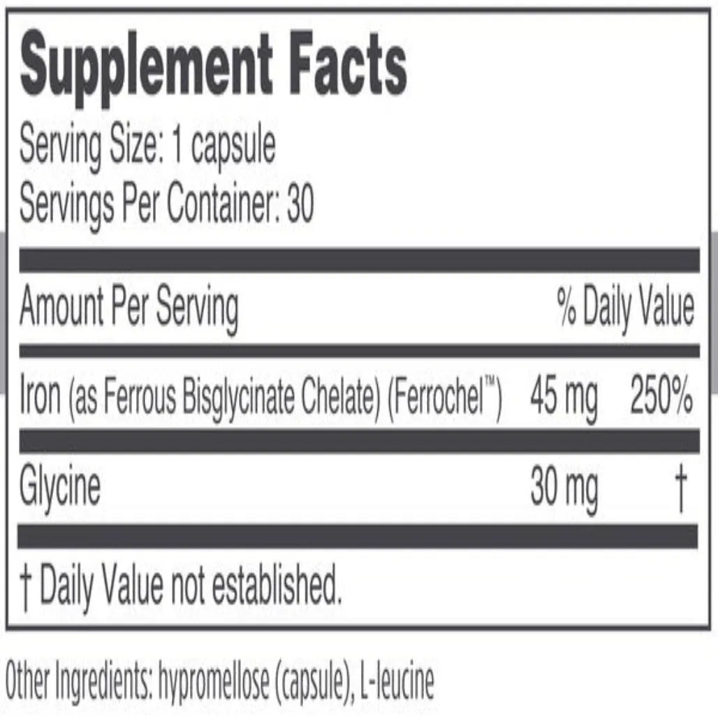 "• Promotes healthy iron levels and normal red blood cell production, 45 mg of iron per capsule."• Supports oxygen supply to tissues and organs• Supp...