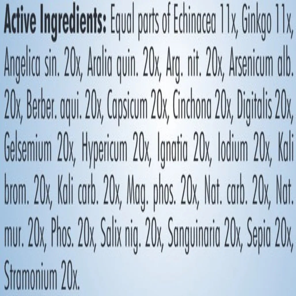 Homeopathic. Formulated for associated symptoms such as irritability, grief, despondency, difficult concentration, oversensitivity and sadness.