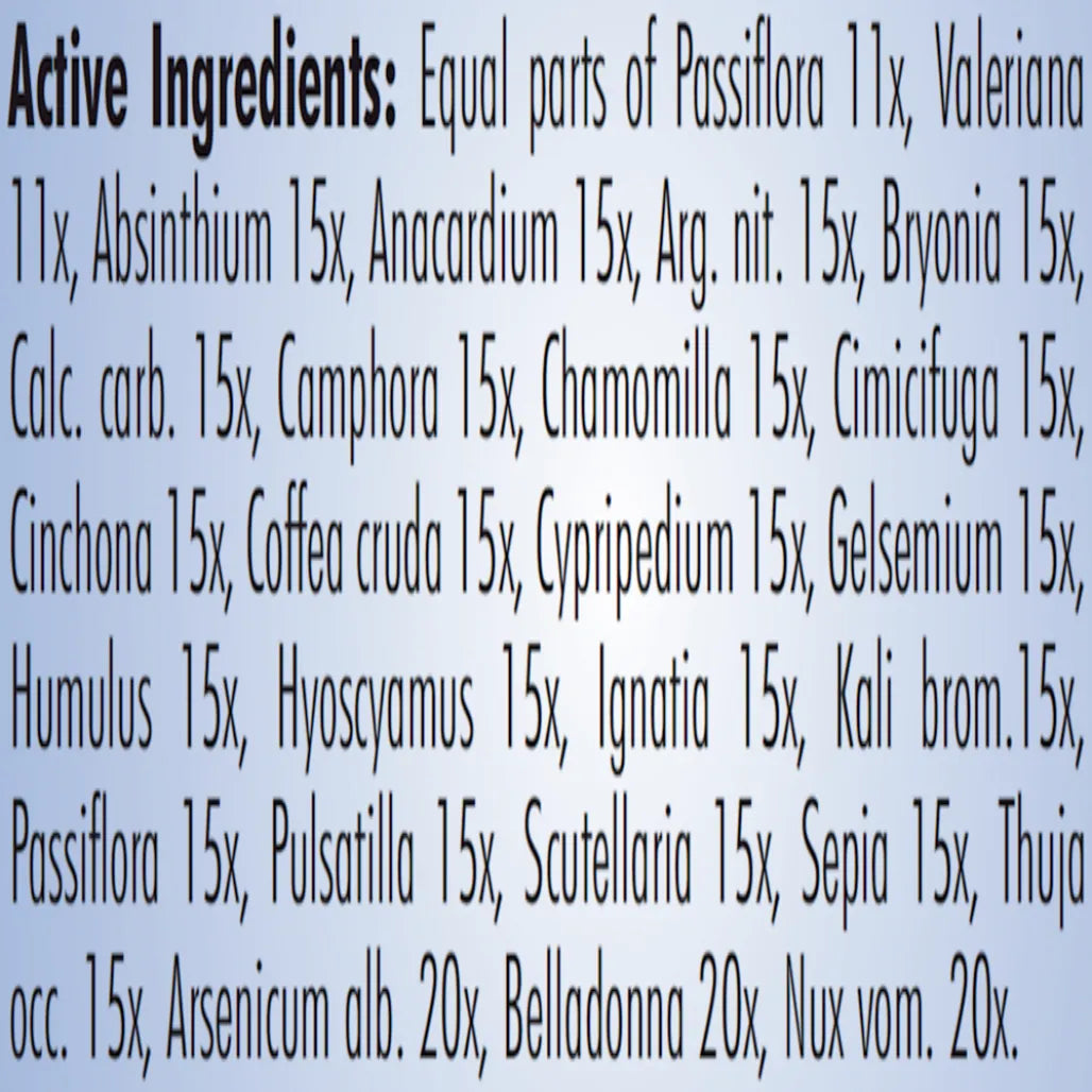 Homeopathic. Formulated for associated symptoms such as frequent waking, restlessness and the inability to fall asleep or return to sleep after waking.