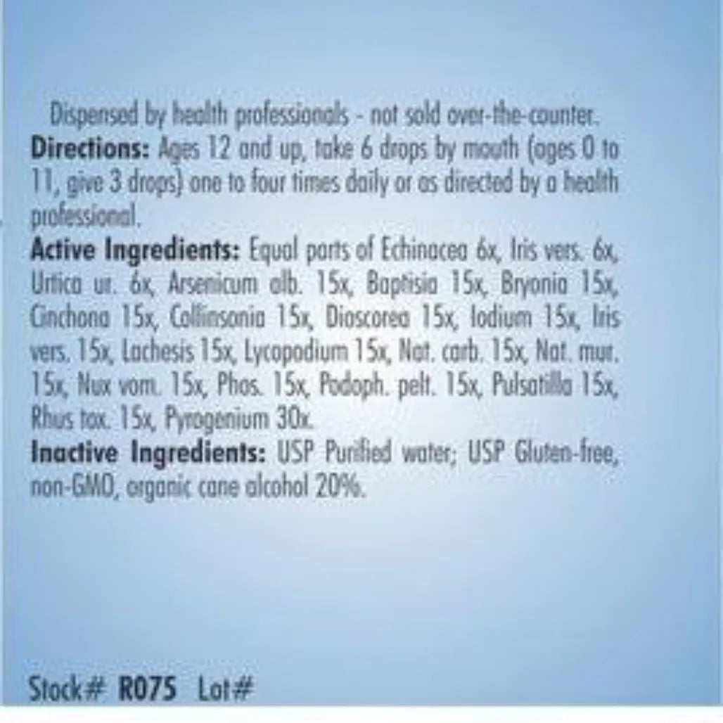 Homeopathic. Formulated for associated symptoms such as diarrhea, indigestion, fever, cramping, nausea and vomiting.