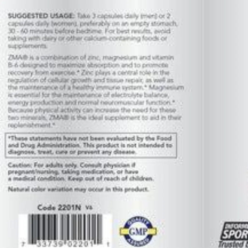 ZMA® is a combination of Zinc, Magnesium and Vitamin B-6 designed to maximize absorption and to promote recovery from exercise. Zinc plays a central role in the regulation of ce...