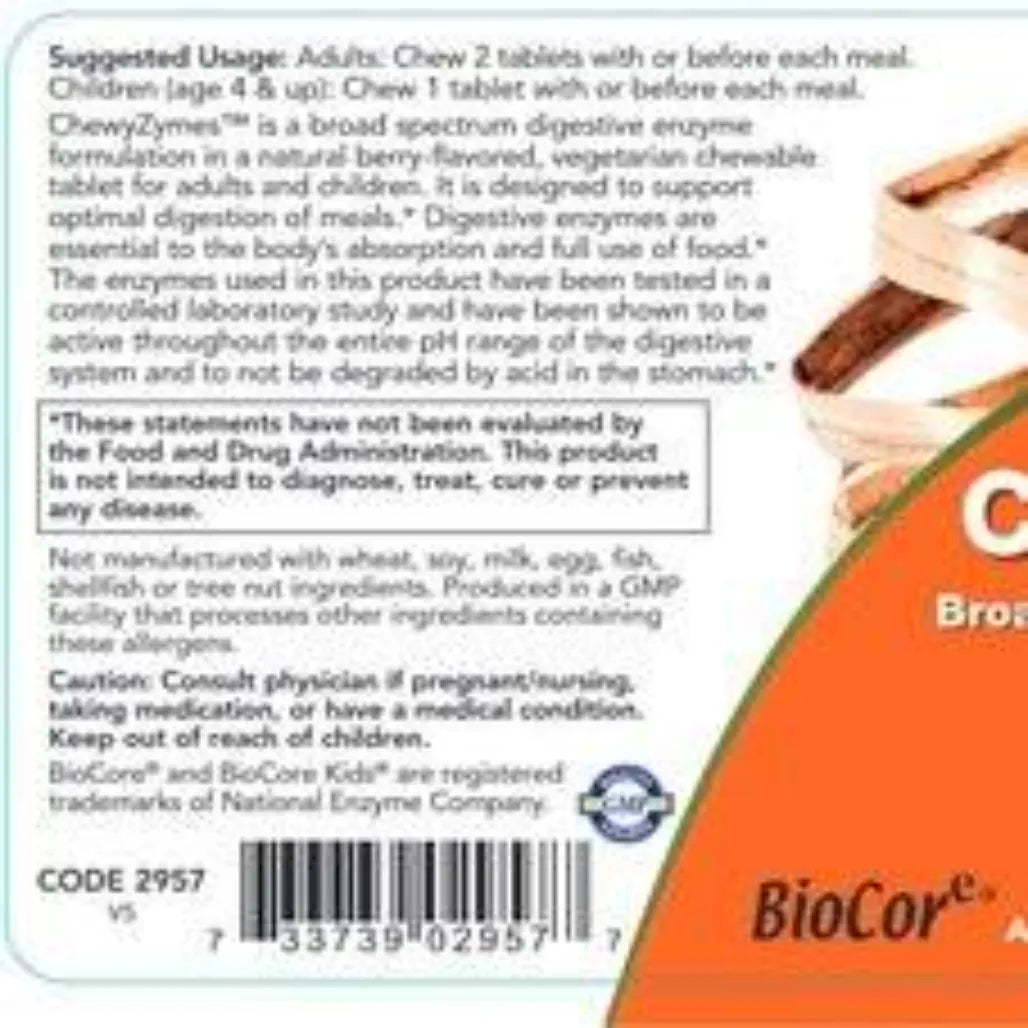 Broad Spectrum Chewable EnzymesNatural Berry FlavorGreat for Adults & KidsChewyZymes™ is a broad spectrum digestive enzyme formulation in a natural berry-flavored, ...