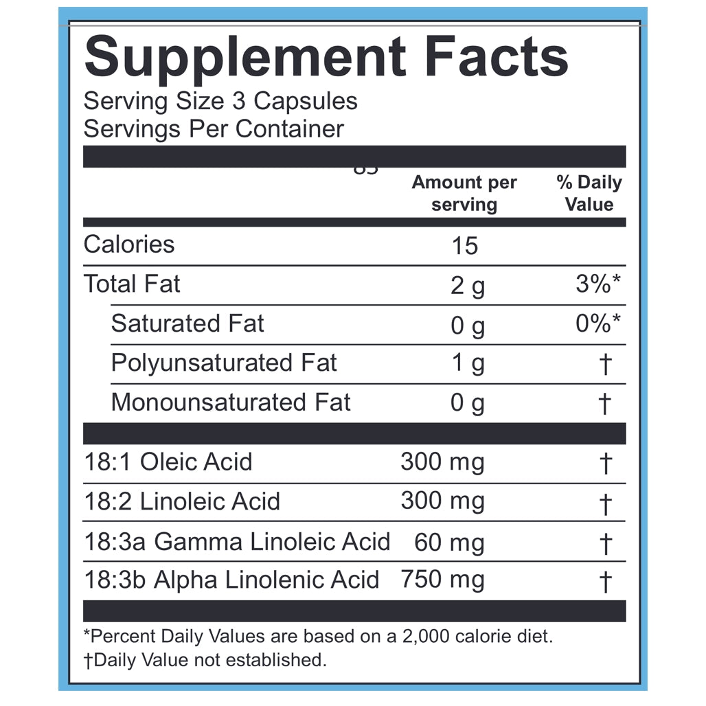 Omega Nutrition's capsules contain our cold pressed Flax Seed Oil & Borage oil rich in ALA (alpha-linolenic acid) Omega 3 fatty acids and GLA (gamma-linolenic acid).