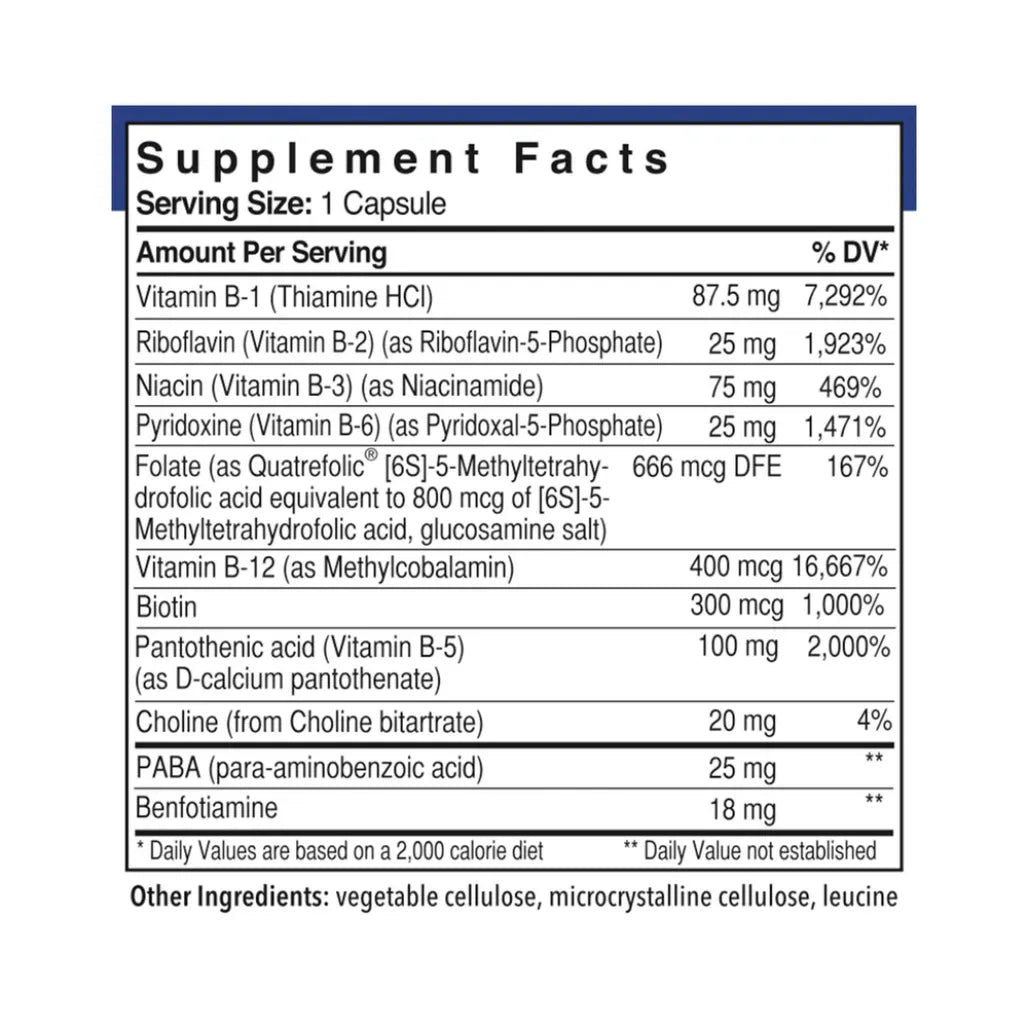 Patient One B-Complex, most commonly recommended for stress, is a blend of 10 essential compounds, including the complete spectrum of B vitamins in their activated and easily absorbable forms, plus related nutrients. Our formula features Quatrefolic®, a cutting-edge active form of folate, and thiamine as Benfotiamine, which has enhanced bioavailability and easily penetrates into the inside of cells.