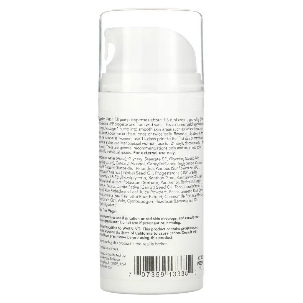 1 full pump dispenses about 1.3 g of cream, providing 20 mg of USP progesterone. This container yields approximately 65 pumps. Massage 1 pump into...
