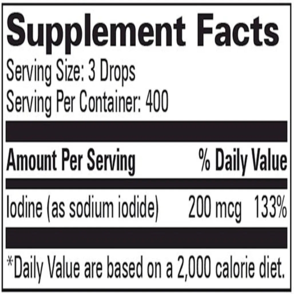 Liquid iodine supplement. Iodine is needed in trace amounts for healthy thyroid function.