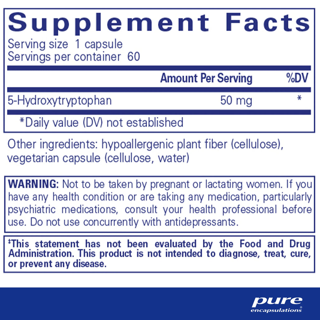 5 HTP 50mg by pure encapsulations is a chemical substance that helps to improve serotonin levels in the body and regulates brain activity such as stress, depression, mood, slee...